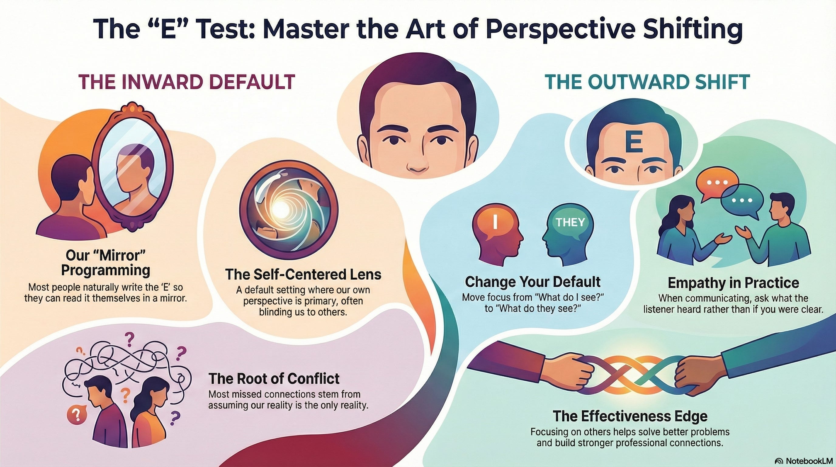 So, next time you draw that mental ‘E’, make it backward for yourself. Make it right for the world. Change your default. Look outward. It’s where the real connection happens.